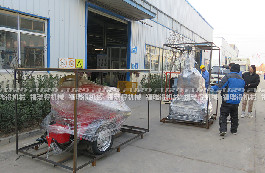 福瑞得機(jī)械1臺灌縫機(jī),1臺移動燈車,一臺馬路吹風(fēng)機(jī)打包裝柜出口新加坡