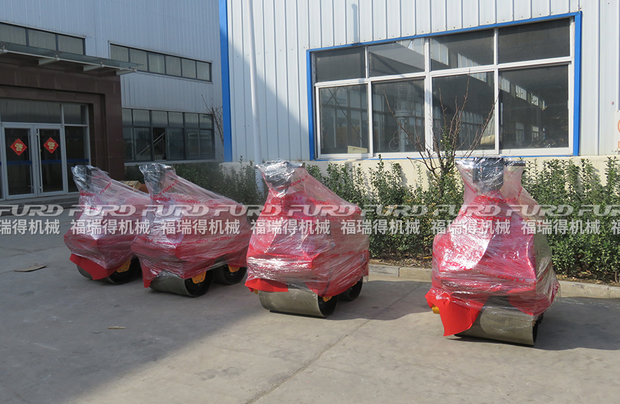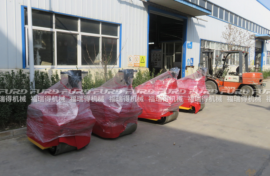 福瑞得機(jī)械臺(tái)4臺(tái)手扶雙輪壓路機(jī)打包發(fā)往廣州