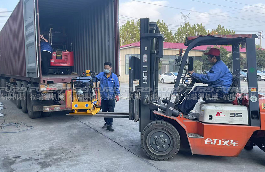 福瑞得一批小挖、平板夯等機(jī)器出口印度