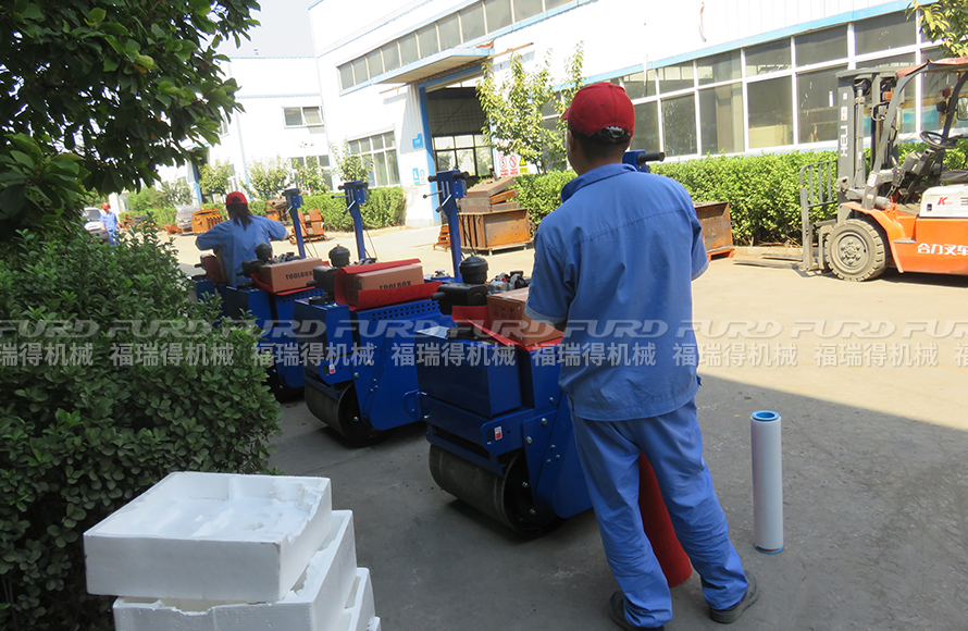 福瑞得4臺雙鋼輪壓路機打包發(fā)往金華市