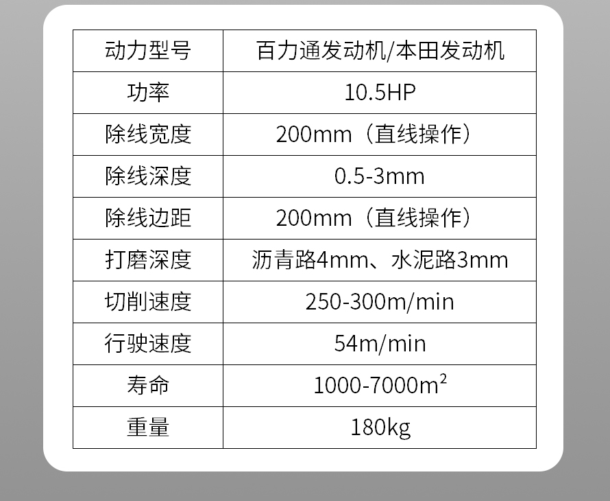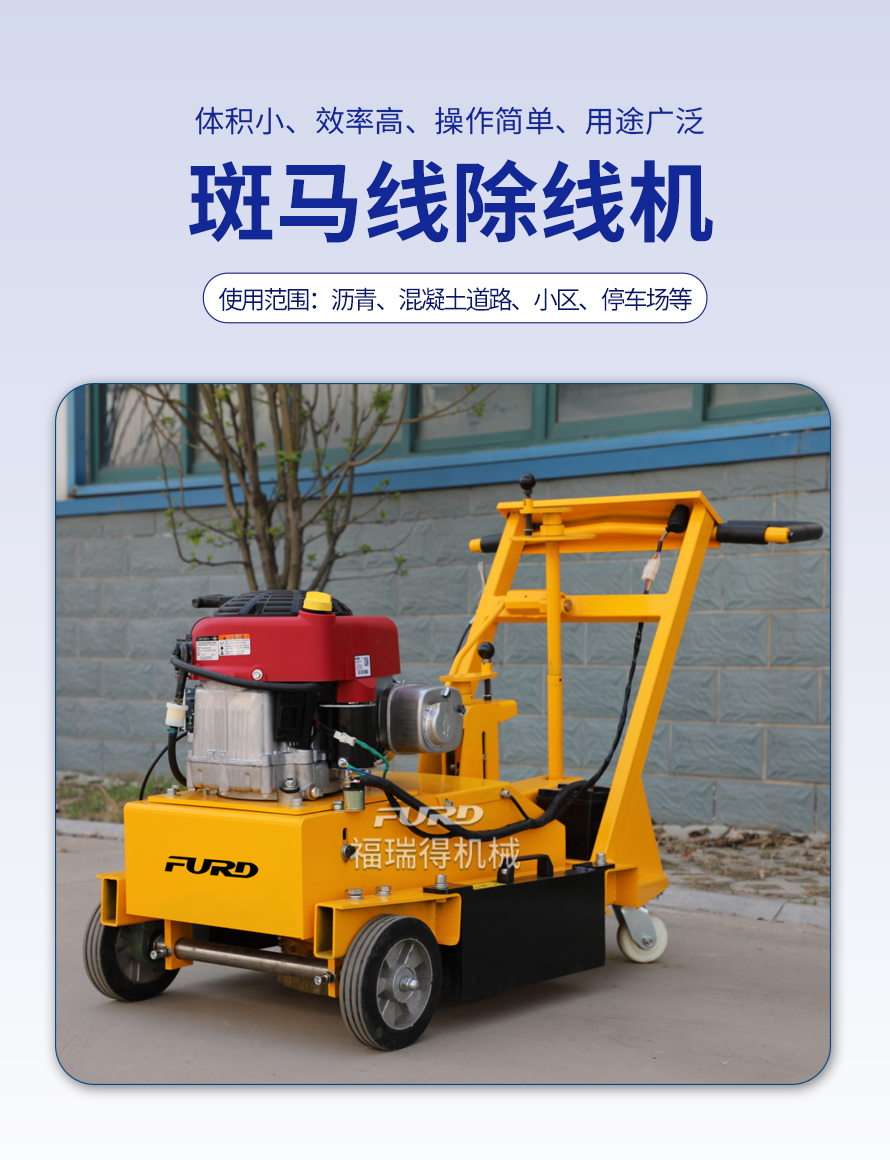 特點(diǎn):體積小、重量輕、機(jī)動(dòng)靈活、工作效率高、操作簡單。 適應(yīng)范圍:主要用于瀝青道路、混凝土道路、物業(yè)小區(qū)、機(jī)場、停車場等地的標(biāo)線清除。