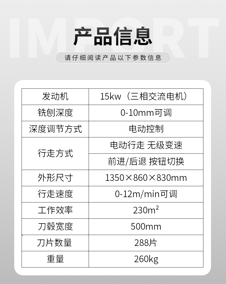 用于橋面鋪設(shè)瀝青或車間舊的混凝土地面重新攤鋪混凝土之前,清除水泥浮漿以及鏟平拉毛, 也用于清除建筑施工中的堅硬灰渣。