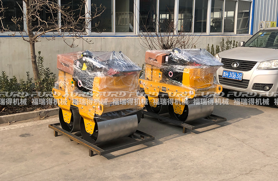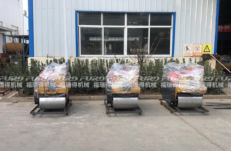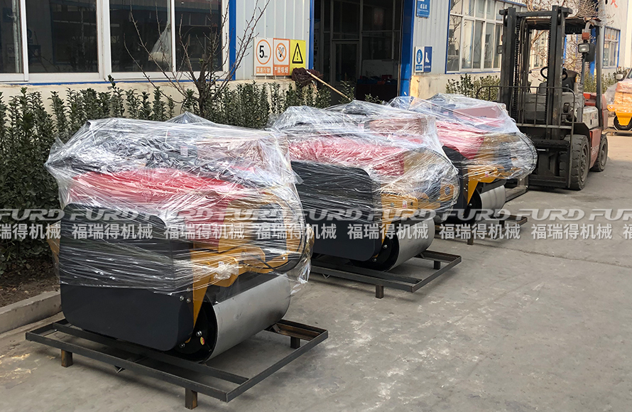 1月26日 福瑞得機(jī)械5臺(tái)手扶雙輪壓路機(jī)打包裝箱出口南非。