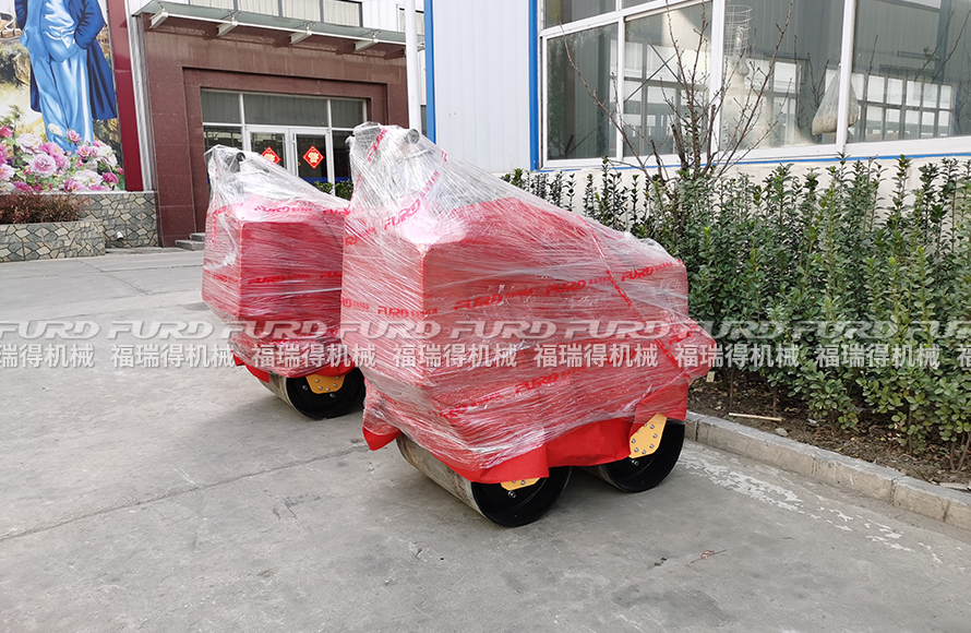 福瑞得機(jī)械8臺(tái)小型壓路機(jī)打包裝車發(fā)往江西