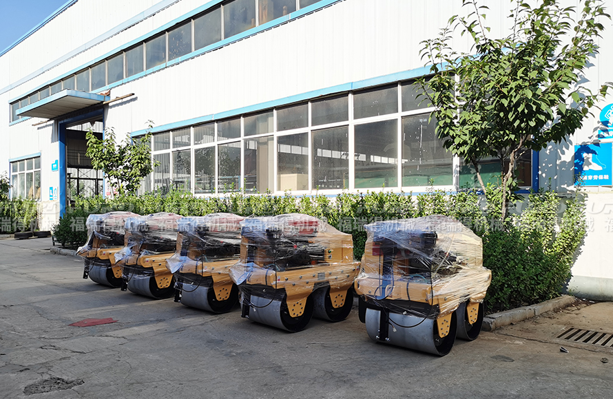 9月11日,福瑞得機械5臺手扶雙鋼輪壓路機和2臺座駕壓路機裝車出口印度。