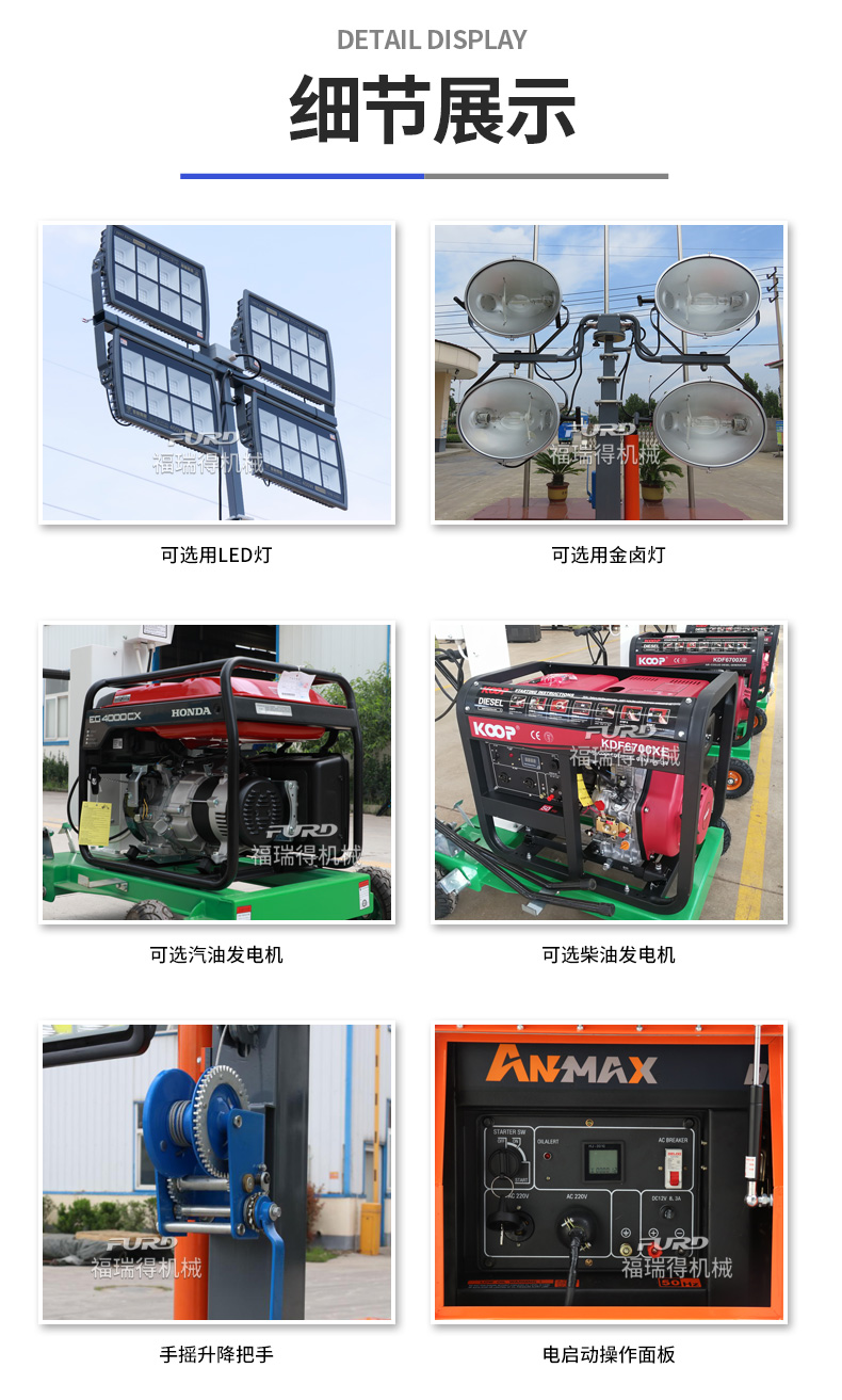 用于體育場館、機場、碼頭等大型公共場所,公路、鐵路、電力等緊急搶險現場,露天采礦現場,以及防洪防汛、搶險救災現場等其他需要緊急備用光源、電源的場合。
