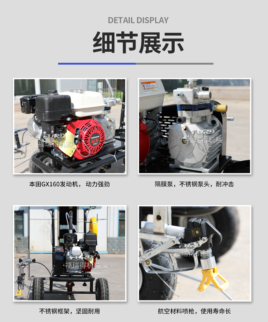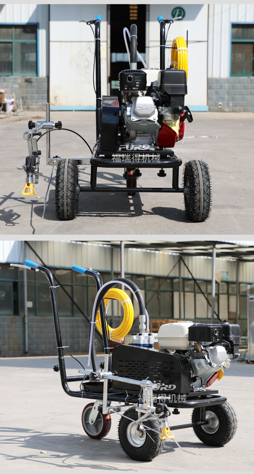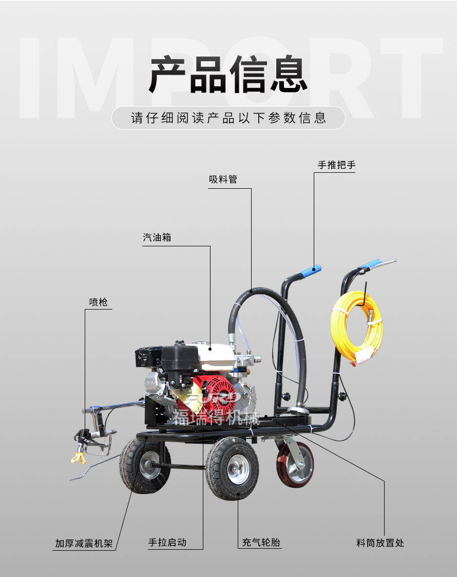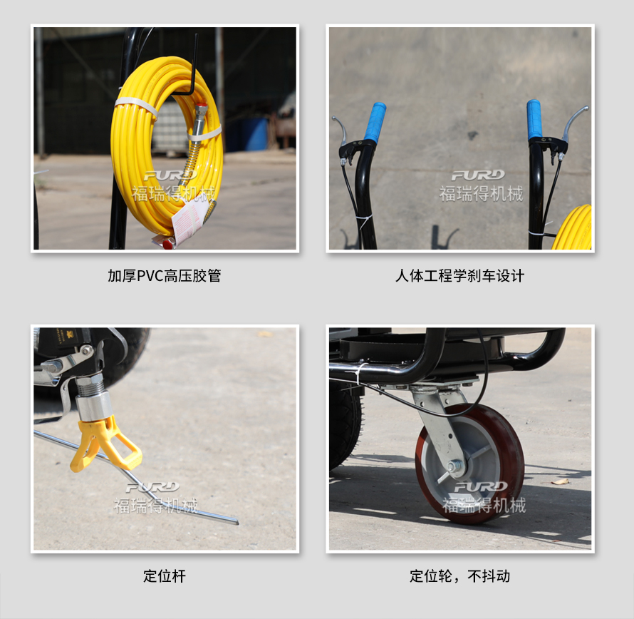 小型手推式道路劃線機(jī)是一種在道路、停車場、廣場和跑道等平整地面上劃出不同約束、指引和警示等規(guī)則限制標(biāo)志的路面施工機(jī)械。最常見的就是在馬路上劃斑馬線,在路上劃車庫線、停車線等等應(yīng)用于小型工程、短途施工,活動方便,靈活操作。