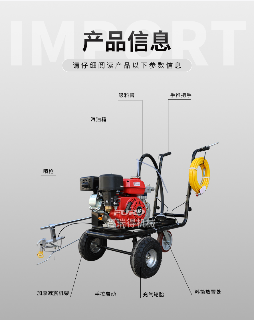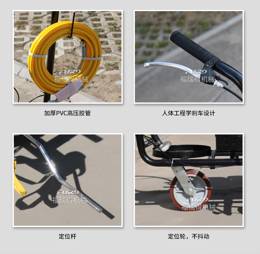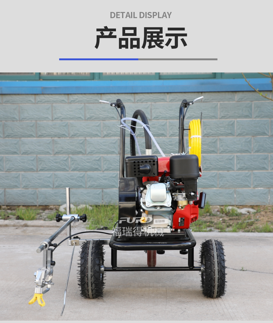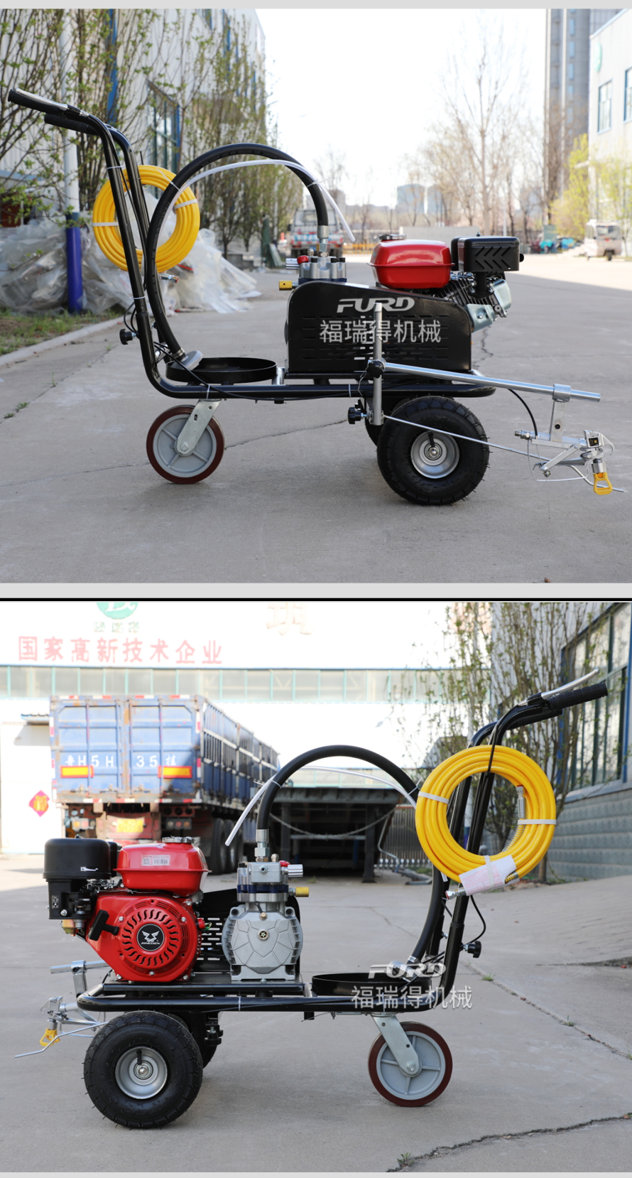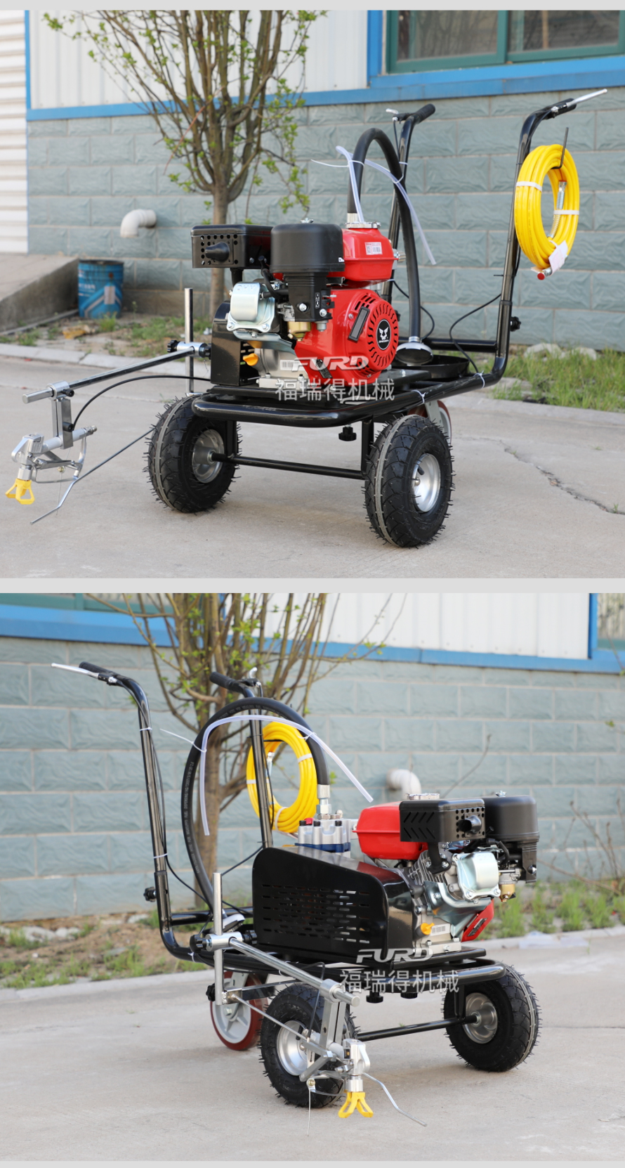 小型手推式道路劃線機(jī)是一種在道路、停車(chē)場(chǎng)、廣場(chǎng)和跑道等平整地面上劃出不同約束、指引和警示等規(guī)則限制標(biāo)志的路面施工機(jī)械。最常見(jiàn)的就是在馬路上劃斑馬線,在路上劃車(chē)庫(kù)線、停車(chē)線等等應(yīng)用于小型工程、短途施工,活動(dòng)方便,靈活操作。