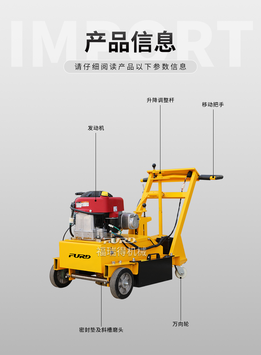 特點(diǎn):體積小、重量輕、機(jī)動(dòng)靈活、工作效率高、操作簡單。 適應(yīng)范圍:主要用于瀝青道路、混凝土道路、物業(yè)小區(qū)、機(jī)場、停車場等地的標(biāo)線清除。