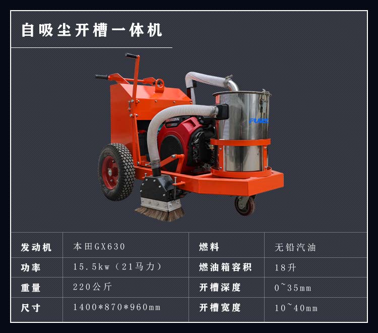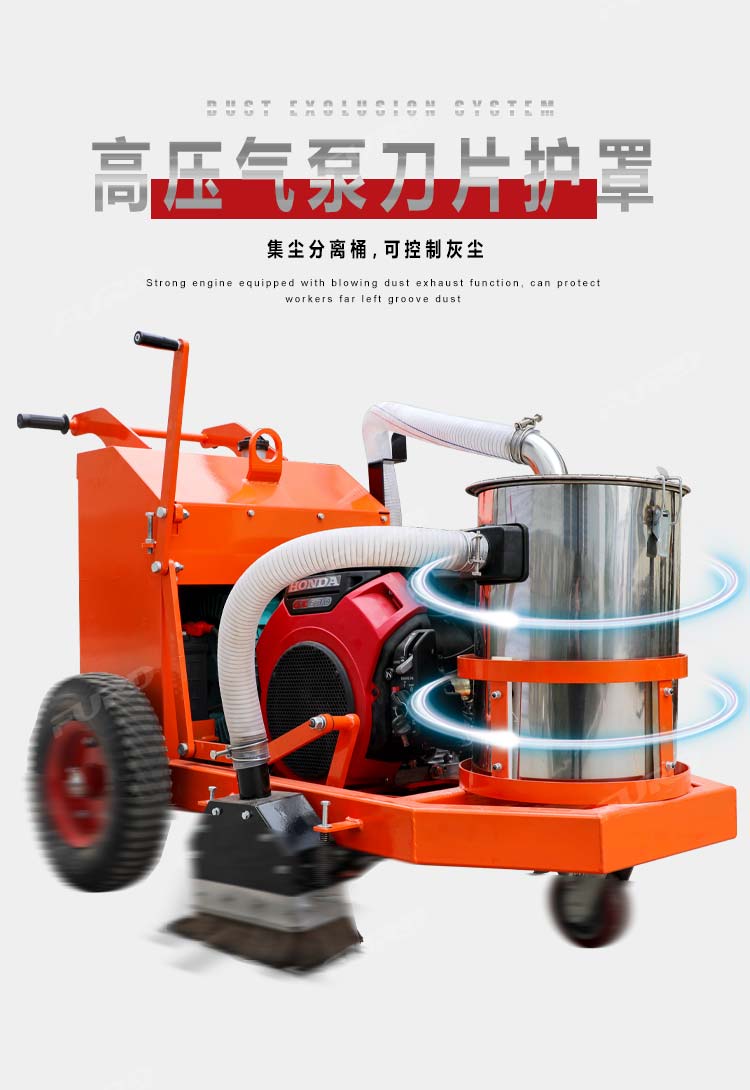 混凝土路面開槽吸塵一體機(jī)集開槽、吸塵為一體,解決了傳統(tǒng)開槽機(jī)工作產(chǎn)生灰塵的問(wèn)題